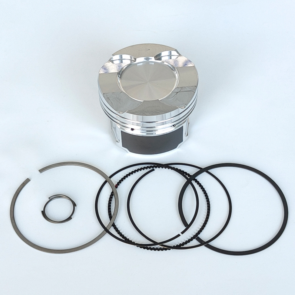 High-power forged pistons : - Forged from aircraft top-spec 4032 alloy/2618 alloy - CNC machined valve reliefs from moderate performance heads and cam combinations - 3D-finished precision 0.5842-cm thick crown to optimized