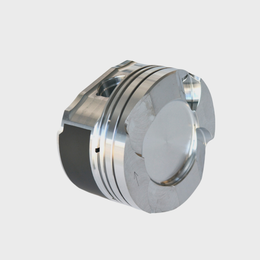 High-power forged pistons : - Forged from aircraft top-spec 4032 alloy/2618 alloy - CNC machined valve reliefs from moderate performance heads and cam combinations - 3D-finished precision 0.5842-cm thick crown to optimized
