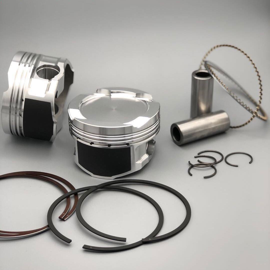 High-power forged pistons : - Forged from aircraft top-spec 4032 alloy/2618 alloy - CNC machined valve reliefs from moderate performance heads and cam combinations - 3D-finished precision 0.5842-cm thick crown to optimized